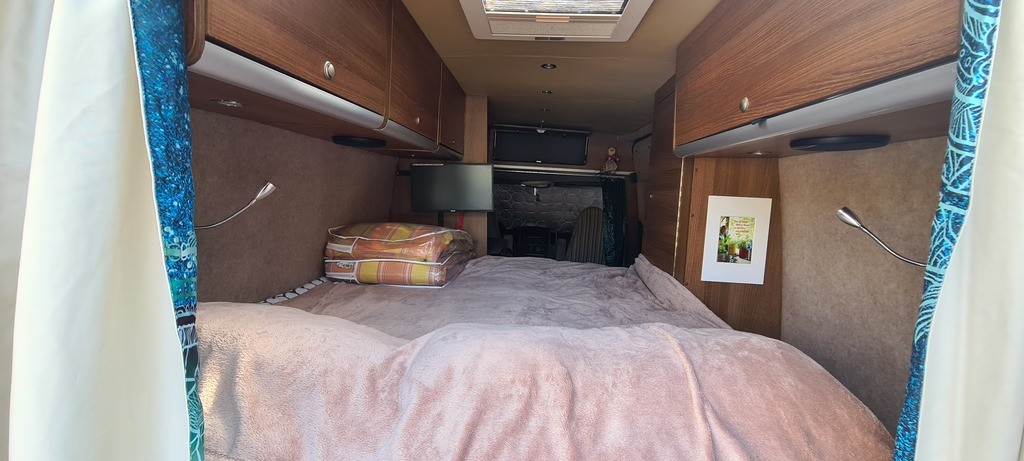 Es gibt zwar spezielle Karrosserieverbreiterungen (die sog. ‚“Ohren‚“), die manche Womobauer zu diesem Zweck einbauen, um an der Stelle des Bettes die Fahrzeugkarosse zu verbreitern. Damit gewinnt man dann ca. 8-10cm pro Seite also ca knapp 20cm was ein 1,90m langes Bett möglich machen würde.